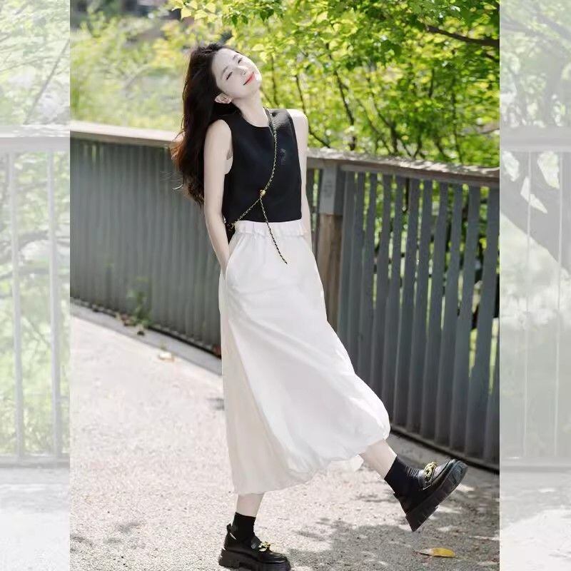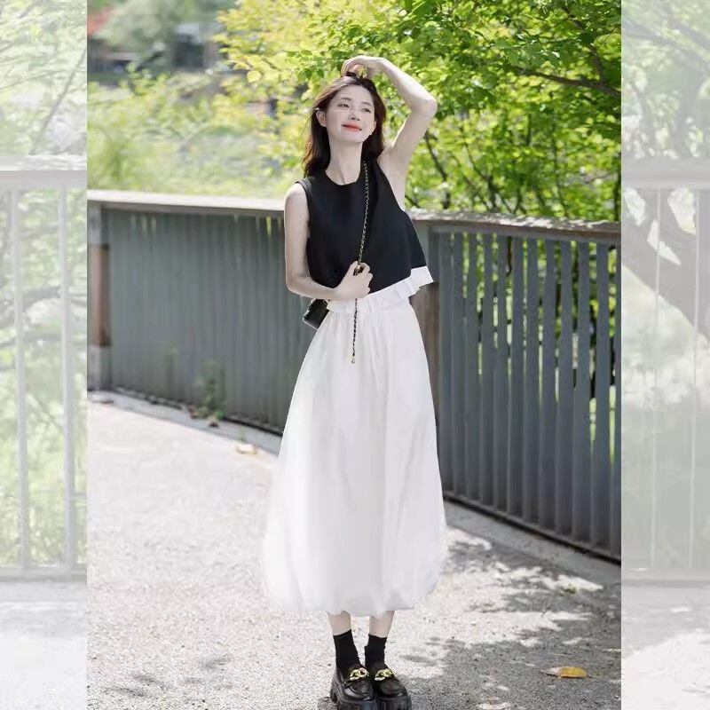 大人気の【大人気】黒のノースリーブベストトップスカートスーツレディース夏ストリートエイジングファッショナブルなハイエンドスモールドレスツーピーススーツは、洗練された夏のスタイルを楽しむ全ての女性にぴったりの注目アイテムです。このツーピーススーツは、特にトレンドを意識したおしゃれな方へ向けてデザインされており、街でのカジュアルなお出かけや特別なイベントまで幅広く活躍します!