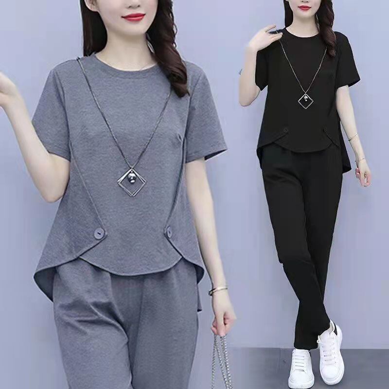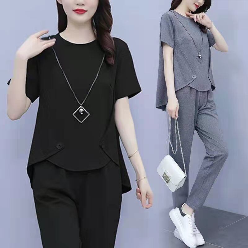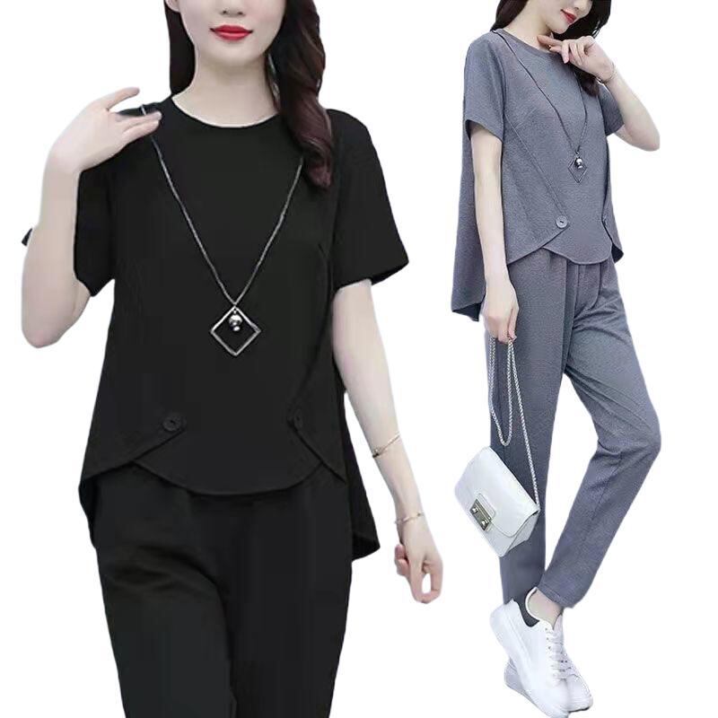 大人気の【大人気】夏の新しい大きいサイズの女性のスーツファッショナブルなゆったりとした細身 多目的腹カバー太った女の子のシンプルなツーピーススーツは、暑い季節でもおしゃれを楽しむ全ての女性にぴったりの注目アイテムです。このスーツは、特に快適さとスタイルを重視する方へ向けてデザインされており、日常使いから特別な日まで幅広く活躍します!