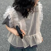 デザイン/メッシュフリルベストとTシャツのツーピーススーツ