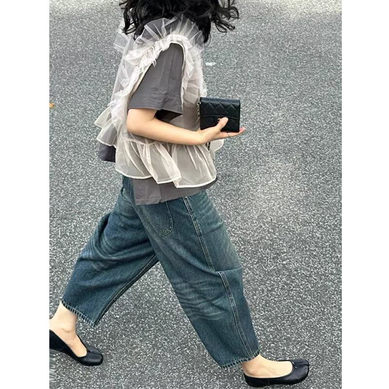 大人気の【大人気】年齢を感じさせない美しくファッショナブルなメッシュフリルベストTシャツツーピーススーツの完全なセットは、夏のスタイルを一新するための必須アイテムです。このツーピースは、メッシュ素材のフリルベストと、シンプルでありながら上品なTシャツが組み合わさっており、軽やかな印象を与えます!
