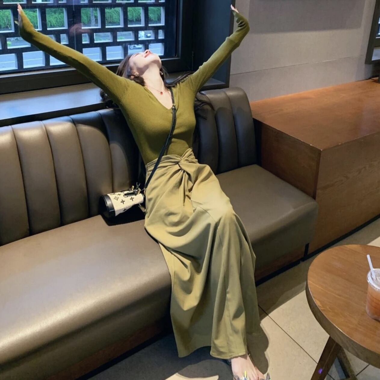 大人気の【大人気】初秋の女性用年齢軽減スーツ、エレガントで女性らしい、高級、万能ニットセーターとスカート、小さくてファッショナブルなツーピーススーツは、これからのシーズンにぴったりのトレンドアイテムです。このファッションスーツは、エレガントなニットセーターとスタイリッシュなスカートの組み合わせが特徴で、洗練された印象を与えます!
