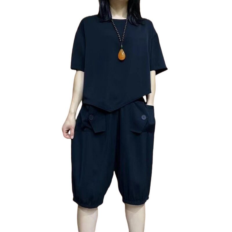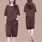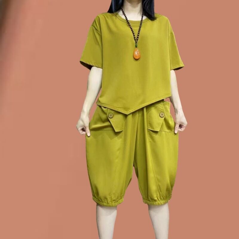 大人気の【大人気】ファッショナブルで年齢を感じさせない女性の夏の新作カジュアルスーツ、大きいサイズのゆったりした半袖Tシャツ、クロップドパンツ、薄手のツーピーススーツは、これからの季節にぴったりのトレンドアイテムです。このファッションスーツは、リラックス感あふれる半袖Tシャツと、スタイリッシュなクロップドパンツの絶妙な組み合わせが特徴で、カジュアルでありながら普段使いにも特別なシーンにもフィットします!
