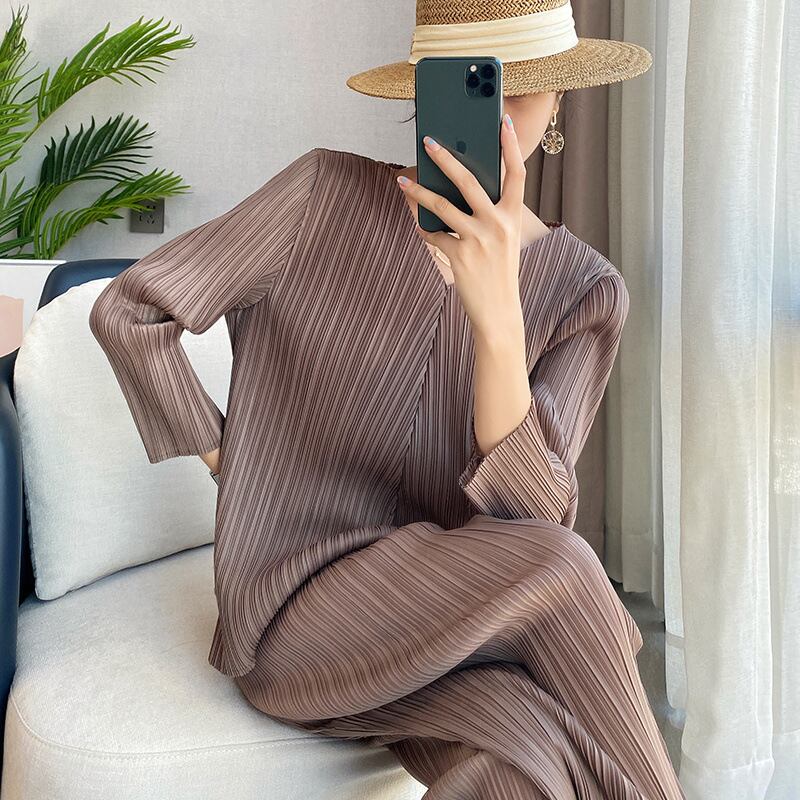 大人気の【大人気】プリーツのスタイリッシュで年齢を感じさせない女性用スーツ、春秋新作のゆったりとしたトップスとストレートパンツのツーピーススーツは、これからの季節にぴったりのトレンドアイテムです。このスーツは、エレガントなプリーツデザインと、快適なストレートパンツの絶妙な組み合わせが特徴で、カジュアルな日常からフォーマルなシーンまで幅広く活躍します!
