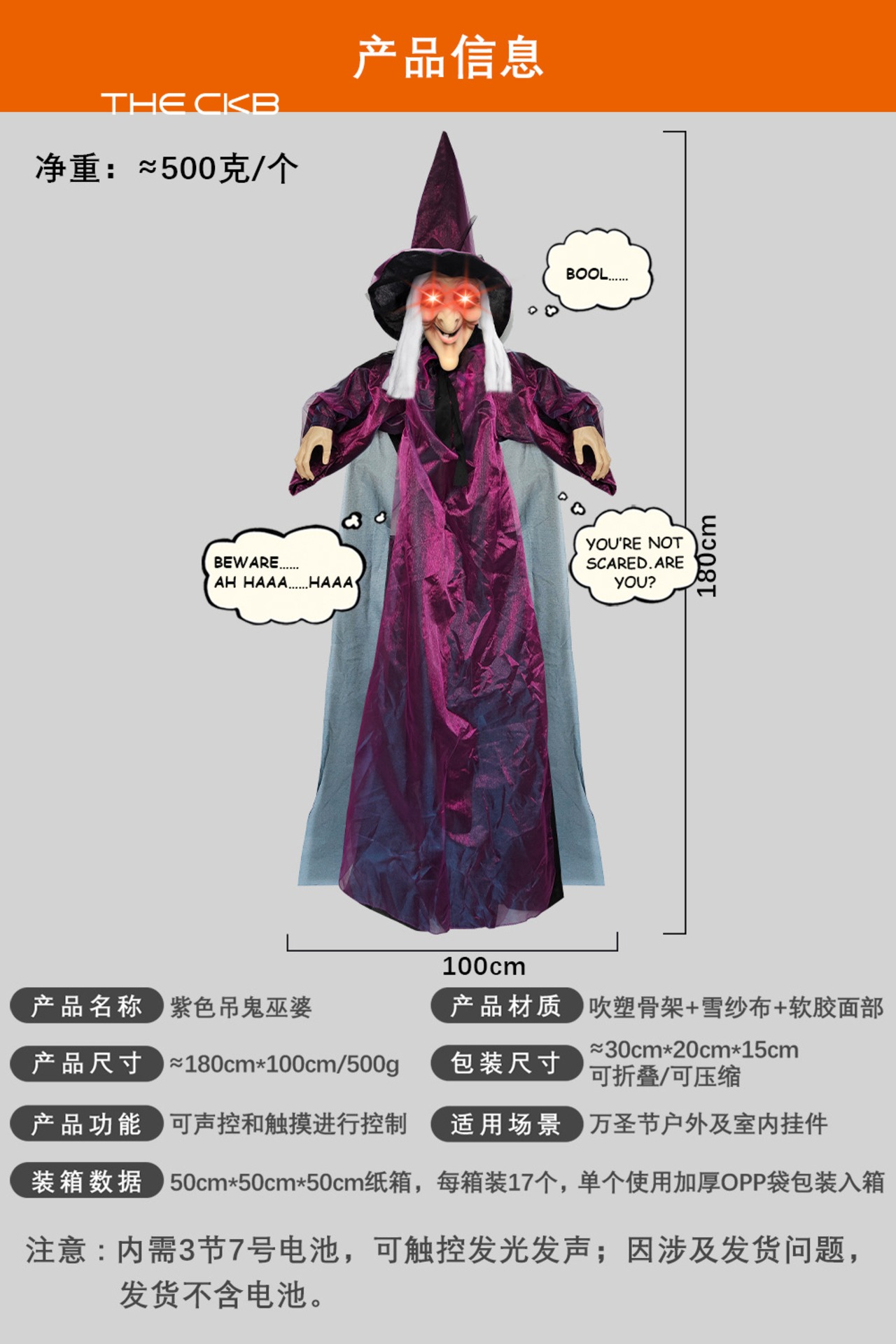 大人気の【期間限定】紫色の魔女 音声制御の光る悲鳴 部屋脱出ホラー吊り幽霊魔女が登場です!この不気味で幻想的なアイテムは、ハロウィンやお化け屋敷イベントにぴったりで、周囲の視線を釘付けにすること間違いなしです。紫色の魔女が光り輝き、音声制御機能によりリアルな悲鳴を発することで、恐怖感を一層引き立てます!