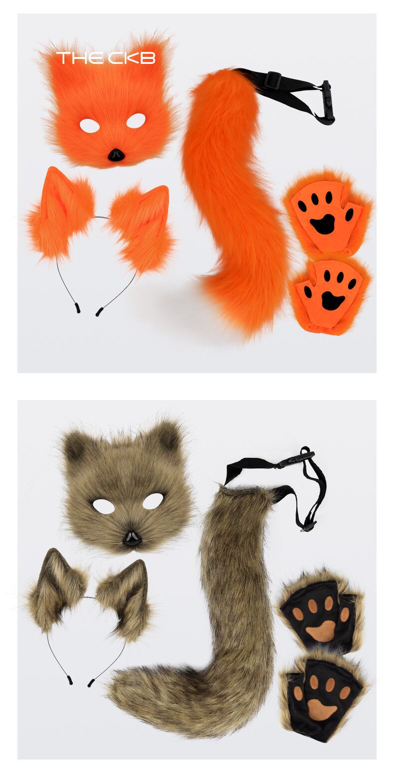 デザイン/可愛いキツネのマスク、耳、尻尾のセット