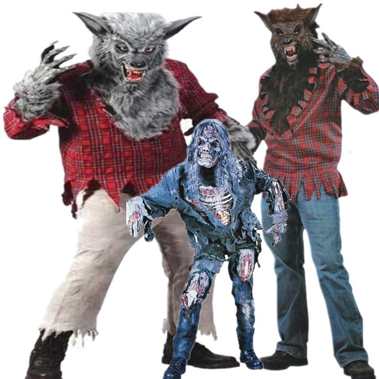 デザイン/グレーの狼男とブラウンの狼男ゾンビスタイルの豪華なスーツ