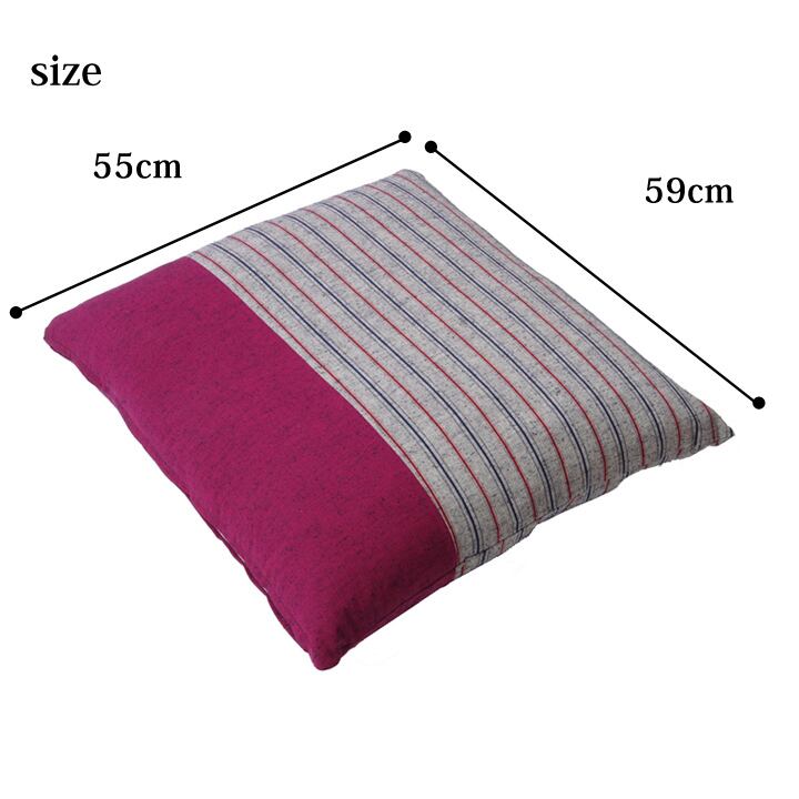 銘仙判サイズ(約55×59cm)の布団です。綿100%を使用した側地は洗濯機でも洗うことができお手入れも簡単です。国内綿入れ加工をしているためふっくらとしたほどよいクッション性があります。和洋どちらにも使用できる商品です。