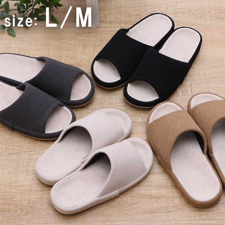つま先がオープントゥタイプのスリッパです。インソール部分は足裏にフィットするので履きやすく疲れにくいです。シンプルなデザインなのでご自宅でもオフィスでもご使用頂けます。来客用にもおすすめです。