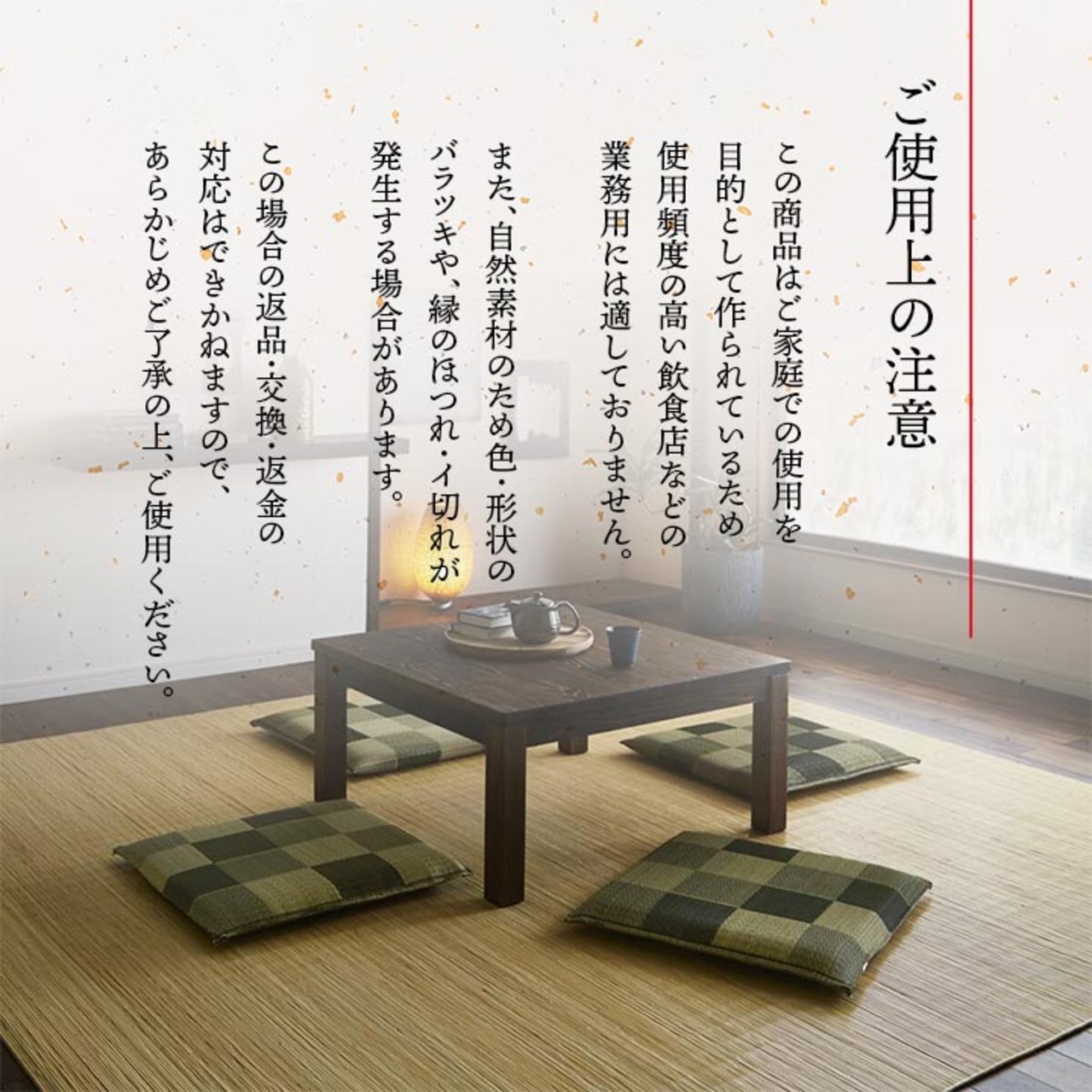 国産い草を使用したい草座布団です。一本一本が太く、表皮が厚くキメが細かいので弾力性があり、耐久性に優れています。