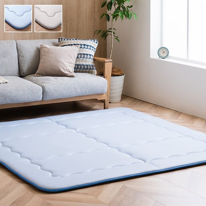 底つき感のない厚さ約40mmのふっくらひんやり冷感ラグ。