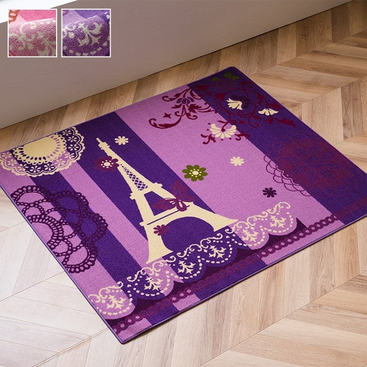 学習机用のデスクカーペットです。かわいらしいエッフェル柄が特徴です。表地はループタイプになっており、毛足が短く掃除がしやすい仕様になっています。裏地には不織布を使用していますので、フローリングが傷つきにくいです。お子様の学習机の下や、ベッドサイドなどにお勧めの商品です。