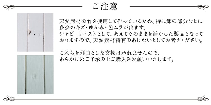 天然の孟宗竹を使用し、自然素材ならではの良さを残した竹ラグで、シャビーテイストインテリアを楽しみましょう。