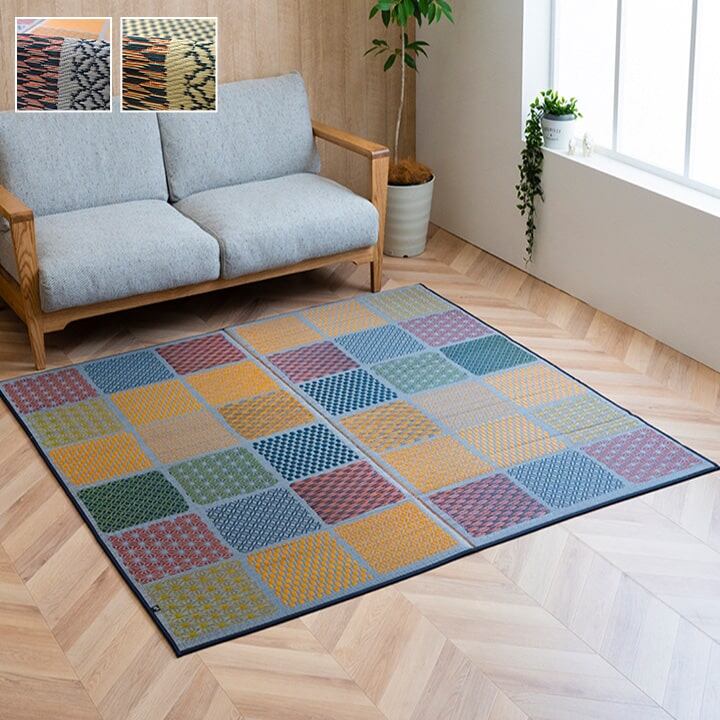 和室にも洋室にも合うモダンなデザインのい草ラグです。裏面にはフローリングを傷つけにくいウレタンフォームを使用しています。クッション性もあり思わずごろんと横になりたくなる肌触りとい草にいい香りが特徴です。国産(九州産)のい草を使用しているため一本一本が太く、表皮が厚く繊維がキメ細かいので弾力性があり、耐久性に優れています。い草には空気の自然浄化作用、湿度の調節作用などがあります。また汚れにくく、使用するうちに黄金色に変化し味が出ます。い草に青森ヒバエッセンス加工を施しています。(抗菌、防臭効果)