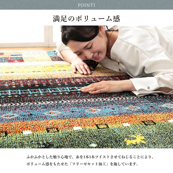 密度が高く、耐久性に優れているウィルトン織りのラグ