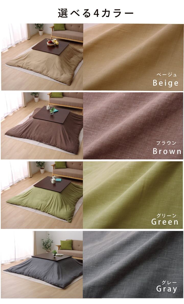 シンプルな無地のファスナー付きコタツ掛けカバーです。洗濯機で洗えるので清潔にご使用頂けます。
