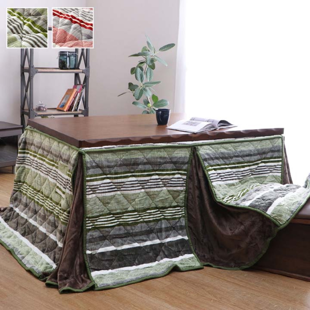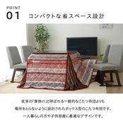 ジャガード織の凹凸感が特徴的な素材感があるこたつ布団です。お部屋の雰囲気気を崩さない淡い色目とカジュアルでお部屋に合いやすいストライプ柄にしました。ダイニング用のこたつ台にご使用いただけます。薄手なので折りたたんでもかさばらず、コンパクトに収納できます。部分暖房のコタツは電気代もおトクです。