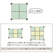 ※本品にはユニット畳本体は含まれません。 厚みが1.2cm〜3cmのユニット畳に適応します。本商品はユニット畳2枚敷き〜6枚敷き程度のズレ防止を想定しています。 四隅を固定するので、間の畳はズレが生じる可能性はあります。(ストッパー未使用の場合にくらべズレません)
