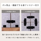 届いたユニット畳を床に置くだけで和のスペースが出来上がります。ヘリの無い、半畳タイプです。同系色の色で飽きのこない、落ち着いた市松柄を出しました。表生地には国産(九州産)のい草を使用しています。一本一本が太く、表皮が厚く、繊維がキメ細かいので弾力性があり、耐久性に優れています。い草には空気の自然浄化作用、湿度の調節作用などがあります。また汚れにくく、使用するうちに黄金色に変化し、味が出ます。軽量タイプなので、持ち運び、設置、片づけなども楽にできます。裏の不織布にはすべり止め加工を施しています。また、連結用のテープを使用すれば、お部屋に合わせて簡単に何枚でもつなげることが出来ます。