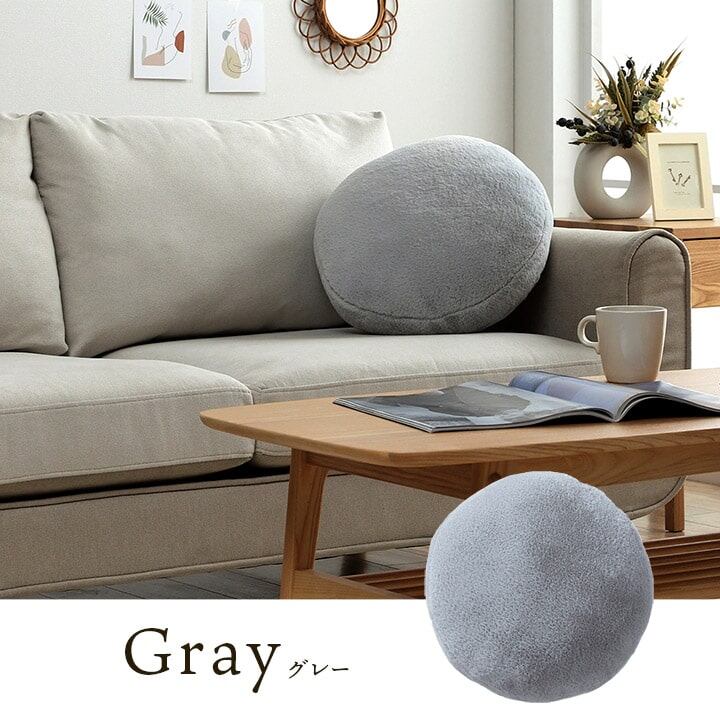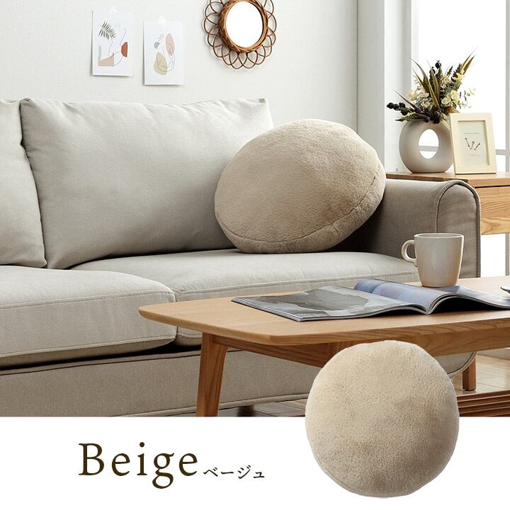 ラビットファータッチでふんわりやわらかな肌触の、ソファやリビングでご使用いただける円形クッションです。