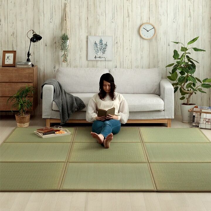 フローリングに置くだけ。なつかしい畳の香りと肌ざわりを手軽に楽しめます。