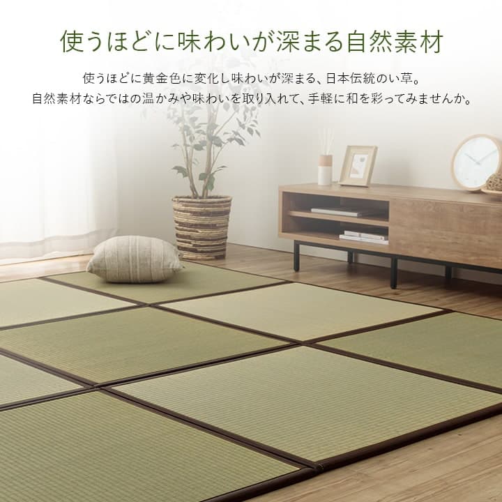 い草には空気の自然浄化作用、湿度の調節作用などがあります。また汚れにくく、使用するうちに黄金色に変化し、味が出ます。