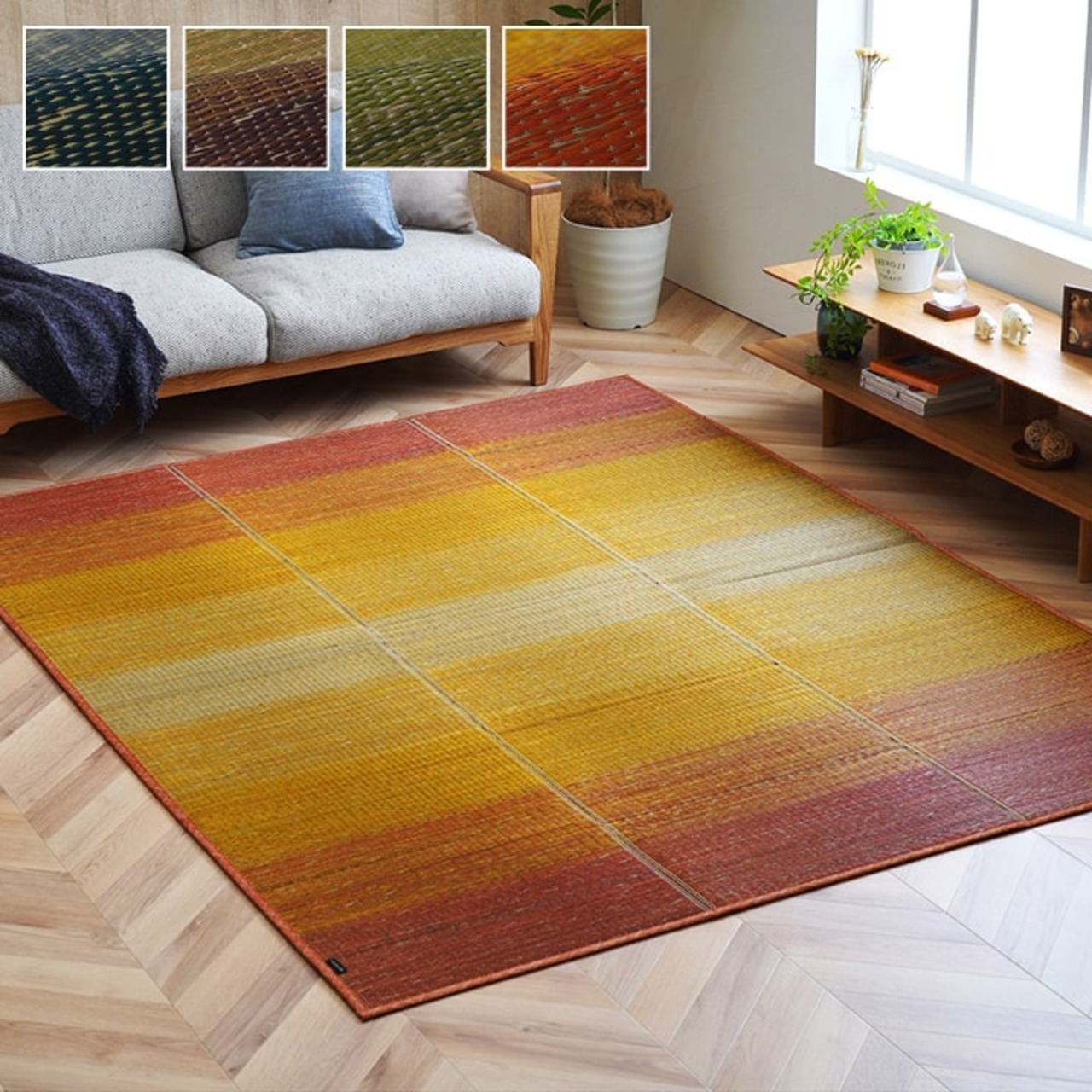 KOBA-GUARDという吹き付け加工をおこなったい草ラグです。KOBA-GUARD加工により制菌・抗菌防臭があります。グラデーションカラーでお部屋の彩と清潔感をプラスしてくれます。裏は滑り止め不織布付きで床を傷つけません。
