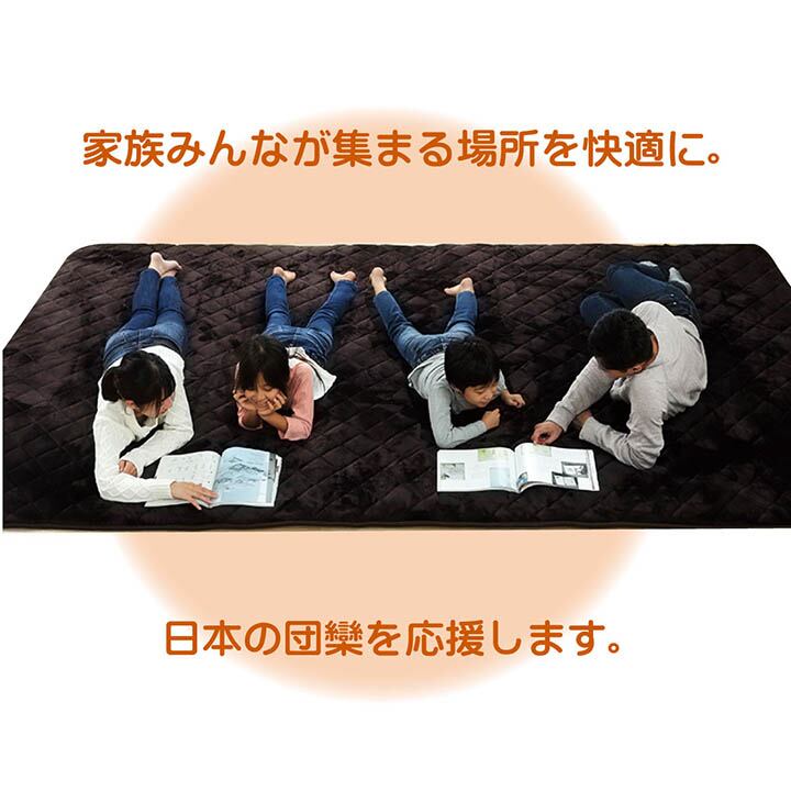 こたつ布団でごろんと横になりゆっくり過ごしたい方にお勧めのこたつ布団敷きです。こたつ布団に入ったままごろんと横になっても体がはみ出にくい大きさにしました。中綿には固綿を20mm使用し,ふっくらとしたボリュームを,表地には滑らかなタッチ感のフランネルを使用することでゆったりこたつライフをお楽しみいただけます。