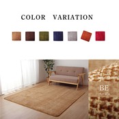 無地系のシンプルデザインです。表地は針抜きでポコポコとした凹凸を出し、なめらかな肌触りの珊瑚マイヤーを使用しています。裏面には滑りにくい加工を施しています。毛足が短いため、お掃除が簡単です。床暖房・ホットカーペット対応です。オールシーズンお使いいただけます。