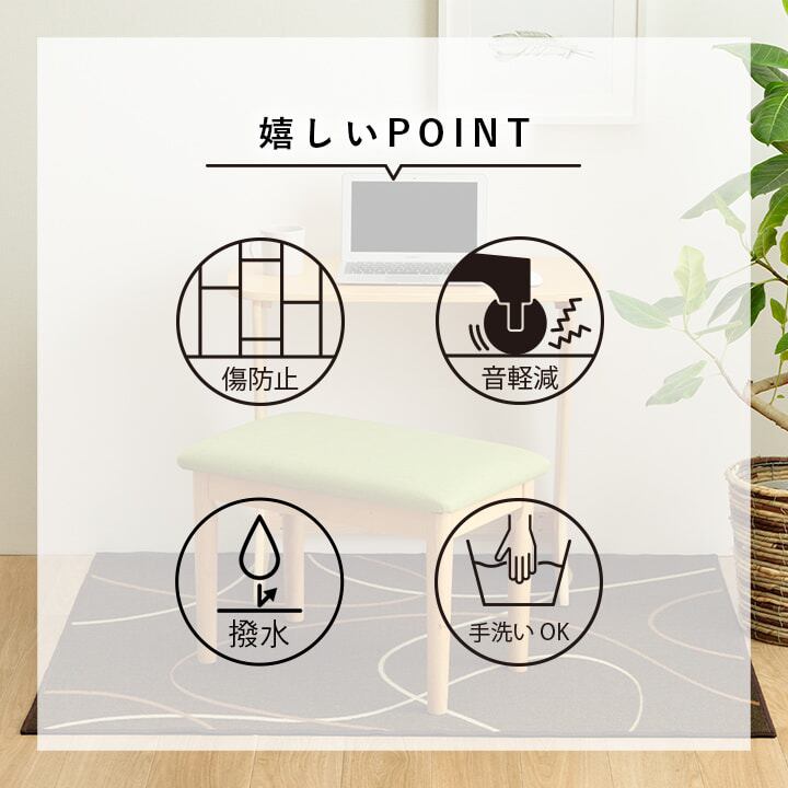 ルームマットとしてキッズルームやベッドサイドに敷いたり、大きいサイズは2人用のダイニングカーペットとしてもお使いいただけます。
