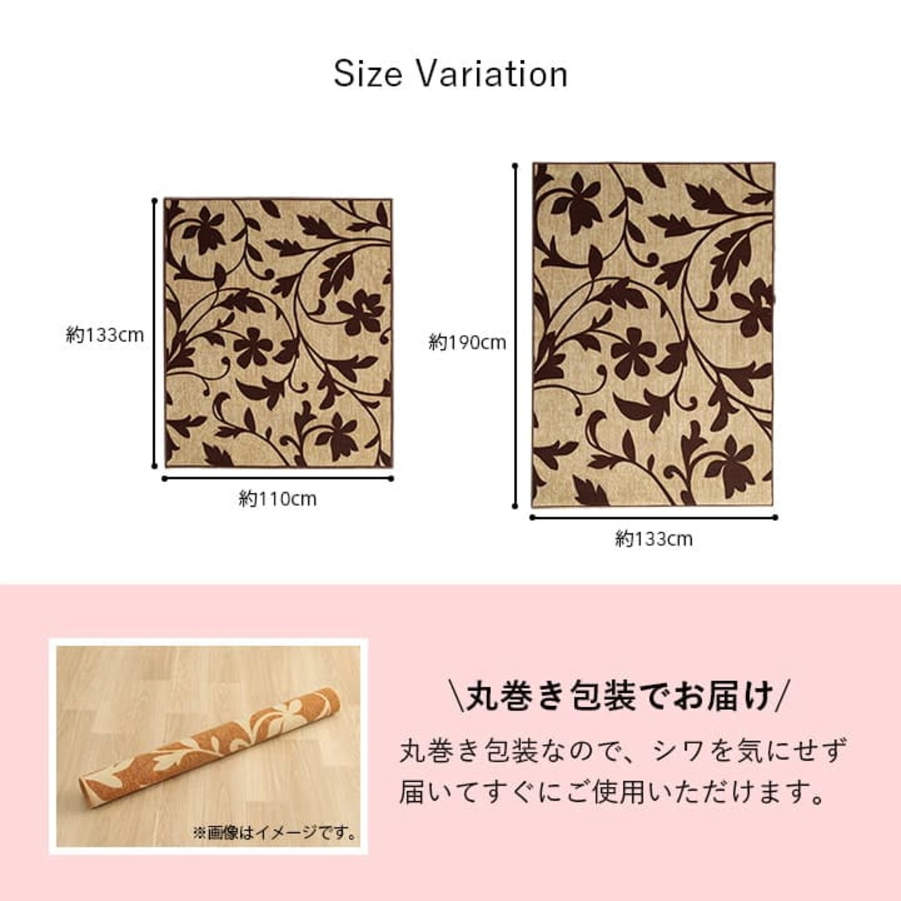 丸巻きでお届けするため、折りシワの心配もなくキレイに敷くことができます。