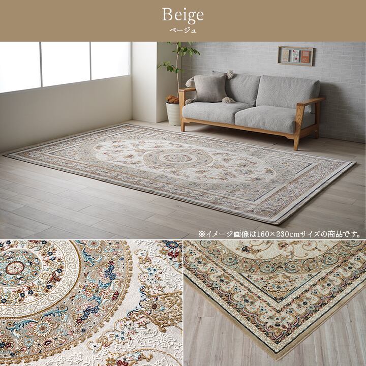 アイボリーホワイトベースで可愛らしいクラシック柄のウィルトンラグ。