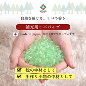 寝装品に求められる機能満載のオリジナル寝具シリーズの枕の中材です。ほのかに香るヒノキの香りで安らかな眠りへ導きます。ポリエチレンパイプに「ヒバエッセンス」を加工しています。青森のヒバの木から抽出されるヒバエッセンスには、ヒノキチオールという天然物質として極めて抗菌性の高い成分が含まれ、医療・食品など多分野で利用研究が進められています。ポリエチレンパイプは国内自社工場で生産している国産のポリエチレンパイプを使用しています。手洗い可能ですので、いつでも清潔にご使用できます。