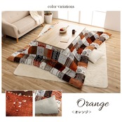 パッチワーク調で細かいデザインが特徴的なあったかこたつ布団。冬を連想させるデザインを組み合わせて可愛らしい印象も与えてくれます。