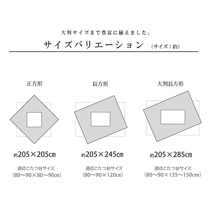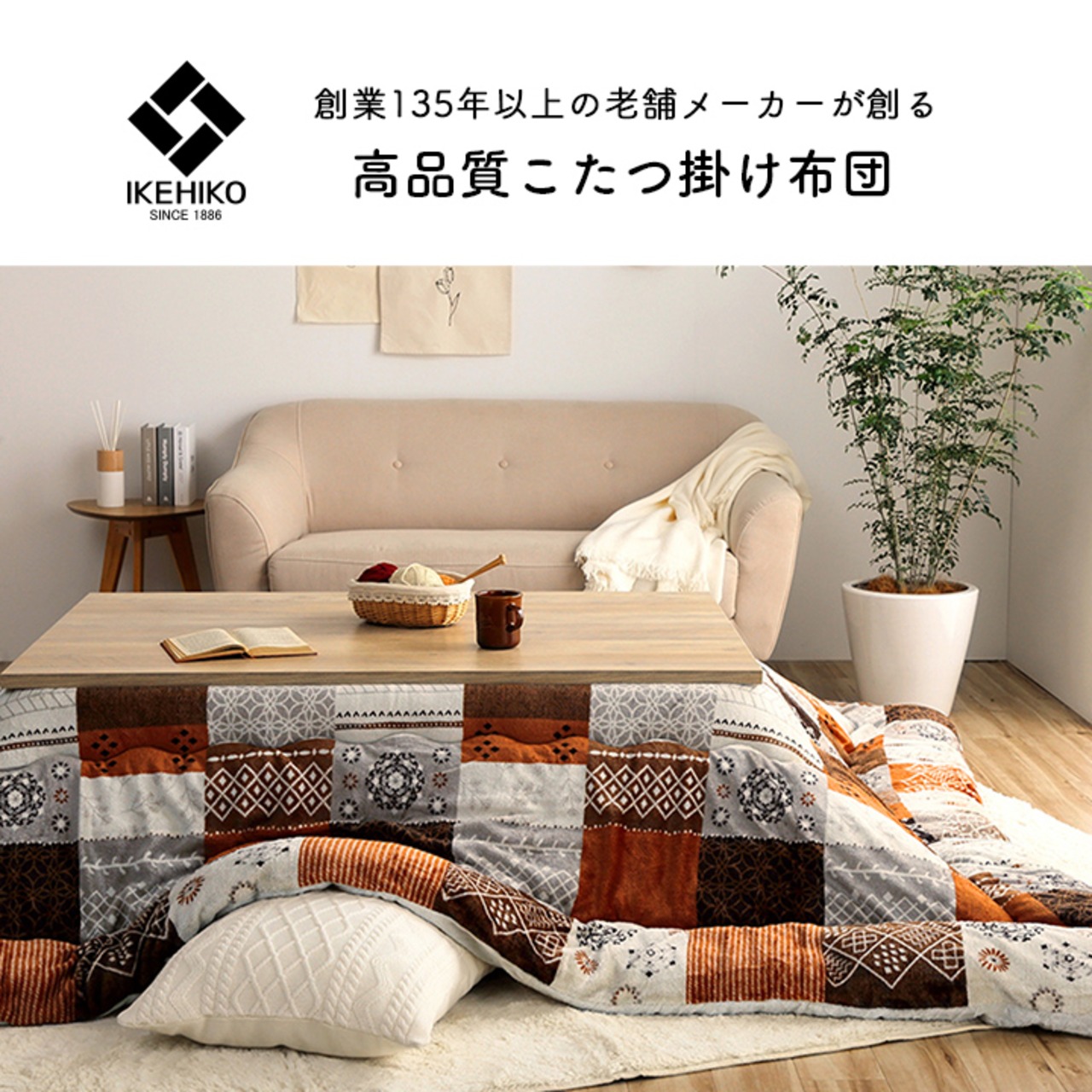 パッチワーク調で細かいデザインが特徴的なあったかこたつ布団。冬を連想させるデザインを組み合わせて可愛らしい印象も与えてくれます。