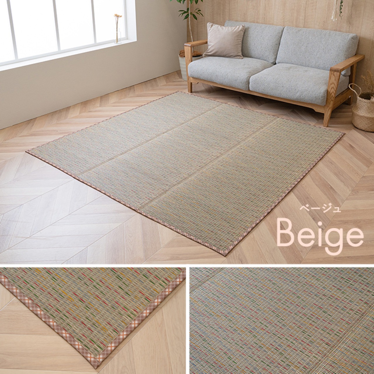 涼しげなカラーリングがお部屋を明るくしてくれるい草ラグ。