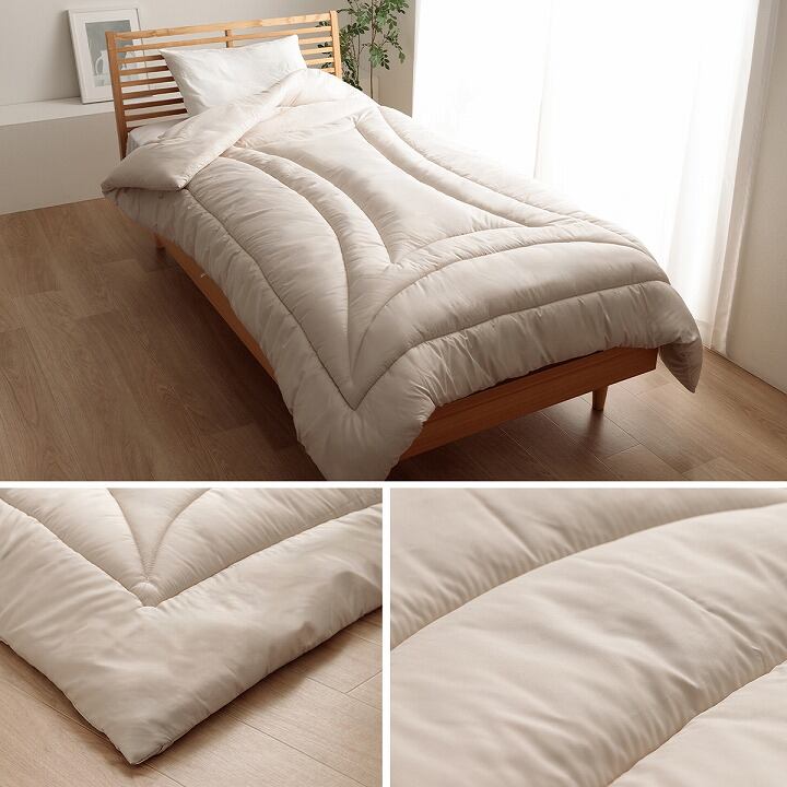 羊毛入りのため、冬は暖かく、夏は汗や湿気を吸湿するので、さらっと快適にお眠りいただけます。