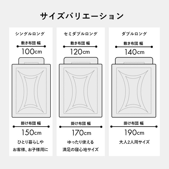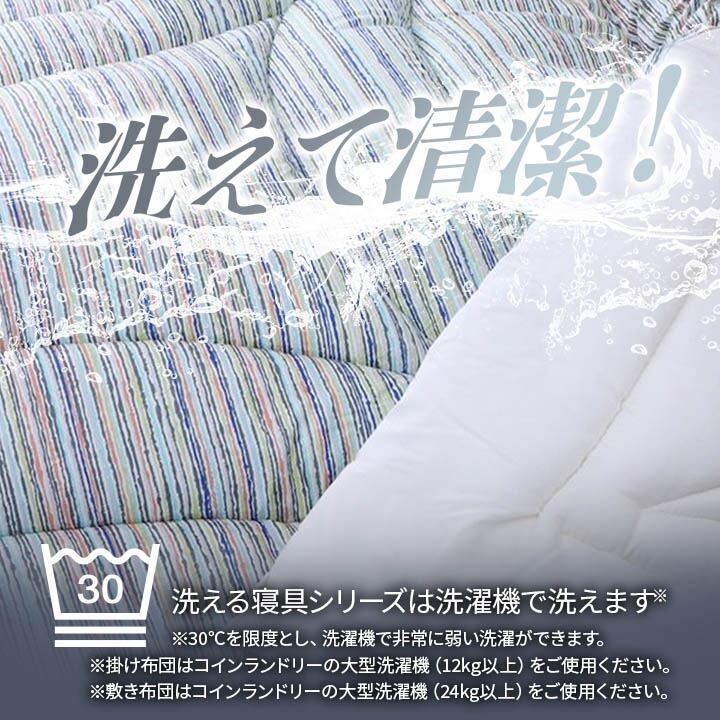 洗濯機で丸洗いできる「洗える寝具」シリーズの掛敷布団セットです。