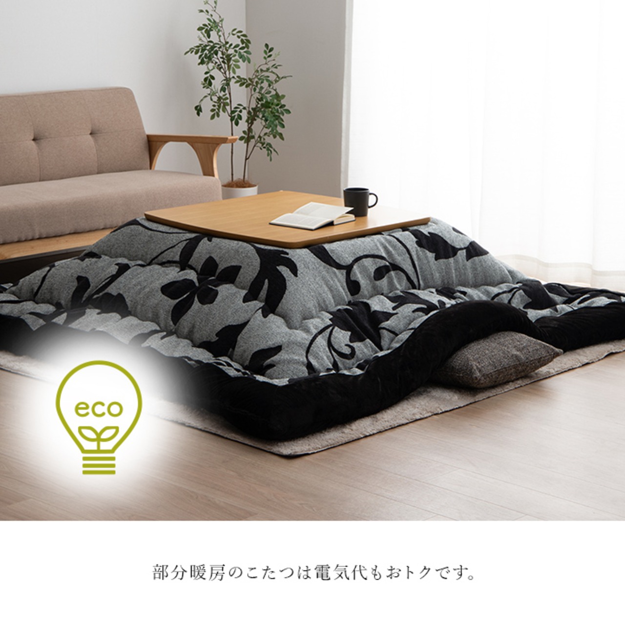お部屋を上品に魅せる、シックでエレガントなリーフデザインのこたつ布団です。