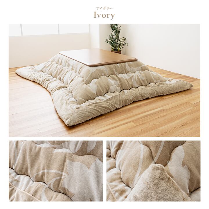 お部屋を上品に魅せる、シックでエレガントなリーフデザインのこたつ布団です。