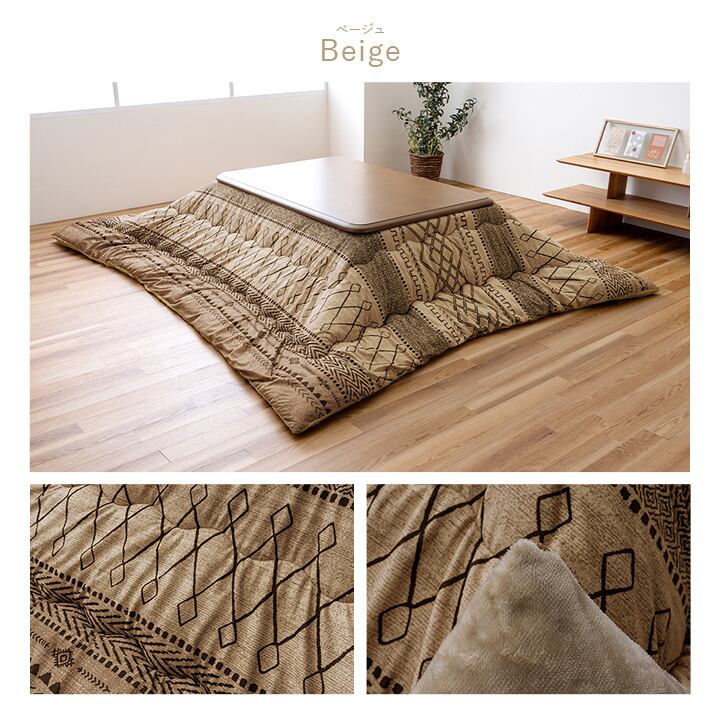 どんなインテリアにも合いやすい、おしゃれな幾何学柄のこたつ布団です。