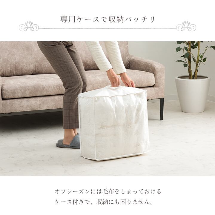 オフシーズンには毛布をしまっておけるケース付きで、収納も困りません。