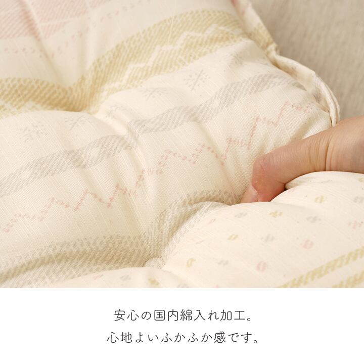 国内で綿入れ加工をしているためほどよいクッション性が特徴です。
