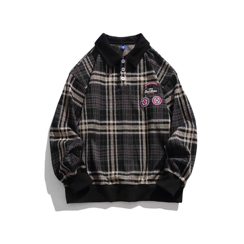 ■ 人気商品・メンズ・ATNメンズウェア・ブランドチェック柄ポロシャツ・ルーズカジュアルデザインです!