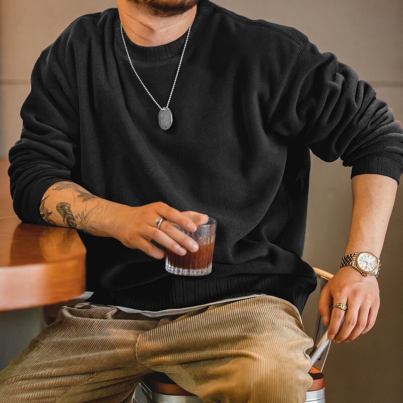 ■ 丸首デザインとリラックスしたシルエットが特徴で、カジュアルにもフォーマルにも合わせやすいスタイルです!
