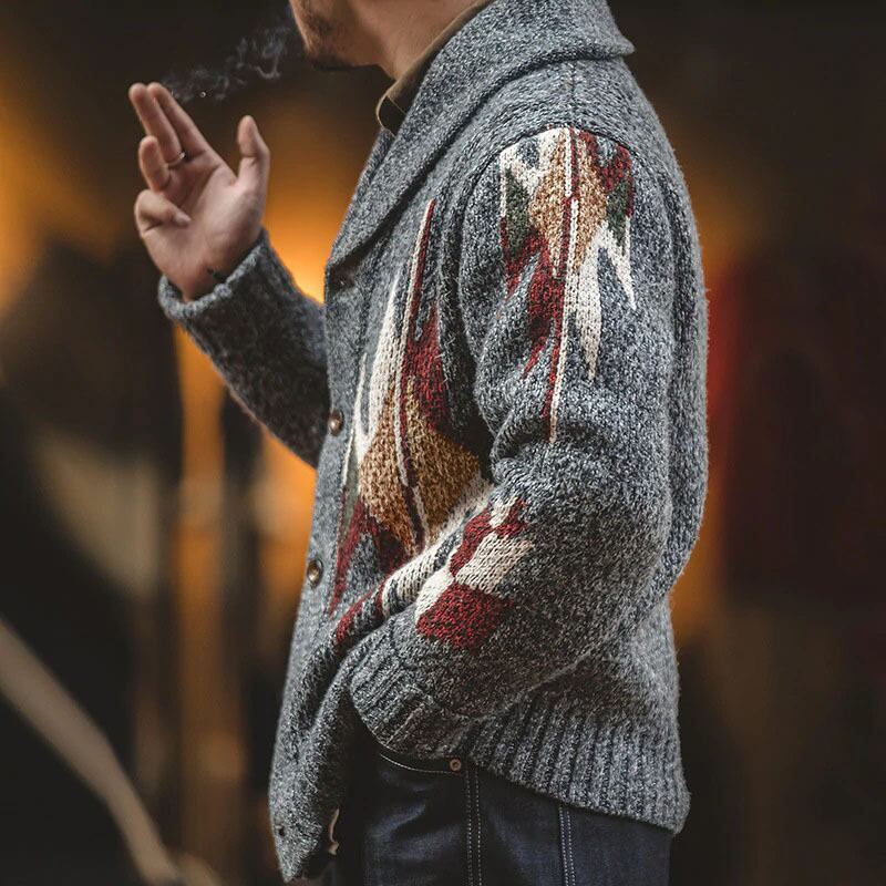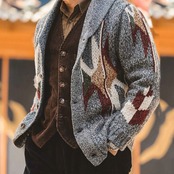 ■ 大人気・メンズ・秋冬新作長袖ジャカードセーター、開襟厚手ニットコートです!