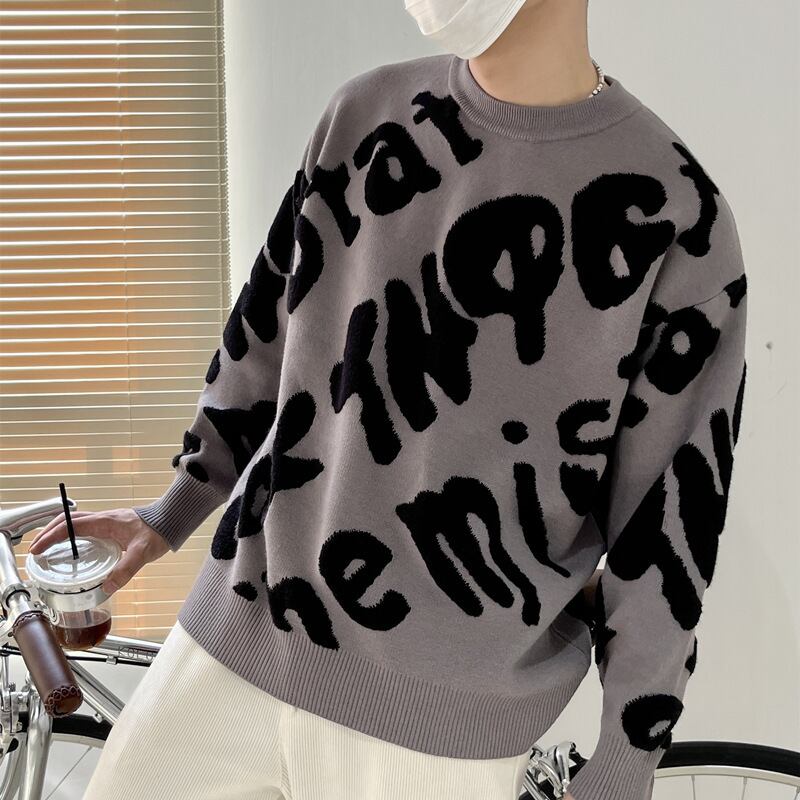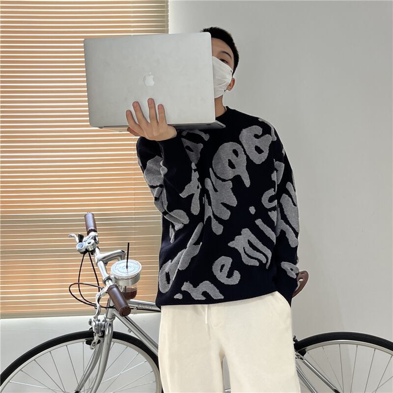 ■ 大人気・メンズ・プルオーバー・長袖丸襟・ジャカードアルファベットセーターです!