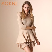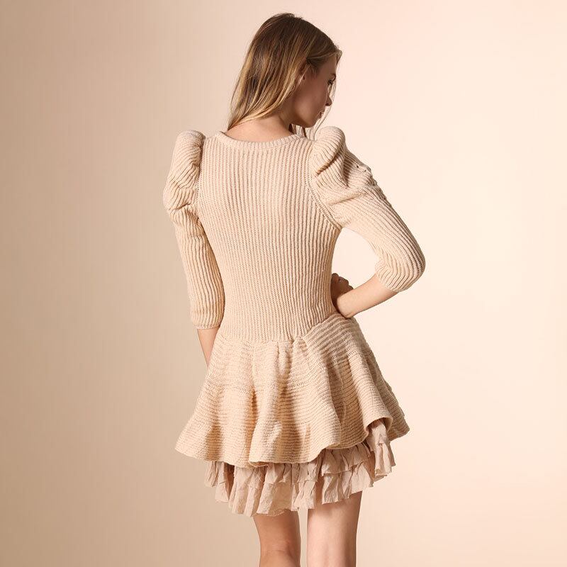 ■ 大人気・秋冬新作・フリル裾パフスリーブスリムフィットニットドレスです!