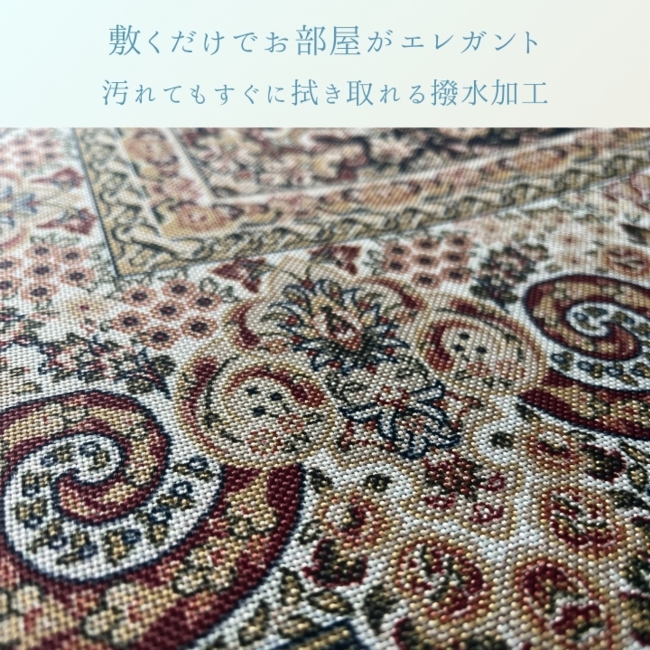 汚れや傷から大事な床を守る、撥水加工付きのダイニングラグ。