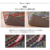 個性的なネイティブ柄で、お部屋の雰囲気をがらりと変えてくれる商品です。裏はウレタンフォーム12mmとクッション性が高く、床を傷つけにくいです。また滑りにくいのでフローリングに最適です。国産(九州産)のい草を使用しています。一本一本が太く、表皮が厚く繊維がキメ細かいので弾力性があり、耐久性に優れています。い草には空気の自然浄化作用、湿度の調節作用などがあります。い草に青森産天然ヒバから抽出した植物由来成分で【抗菌防臭加工】をほどこしています。