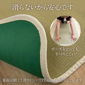 表面はさらっとムレにくい無染土い草を使用し、裏面は軽くてすべりにくいTPE4mmを使用。ポーズをとってもすべりにくい!
